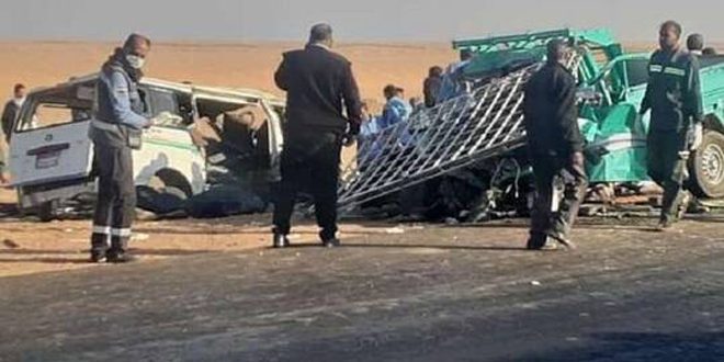 لقي 12 شخصا مصرعهم اليوم في حادث تصادم سيارتين جنوب شرق محافظة أسوان جنوب مصر.