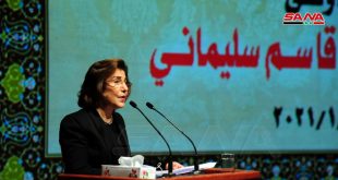 وأشار السفير الإيراني بدمشق جواد ترك آبادي في كلمة له إلى أن سورية كانت على الدوام منارة من منارات الحضارة والإنسانية وركنا أساسيا في محور المقاومة المدافعة عن الحق والكرامة لافتا إلى أن الشهيد قاسم سليماني كان مناضلا من أجل الحرية وحقوق الإنسان وتجاوز بنضاله حدود بلده إيران فناضل إلى جانب سورية والعراق ولبنان في مواجهة الإرهاب والطغيان الأمريكي ومشروعه الإجرامي.