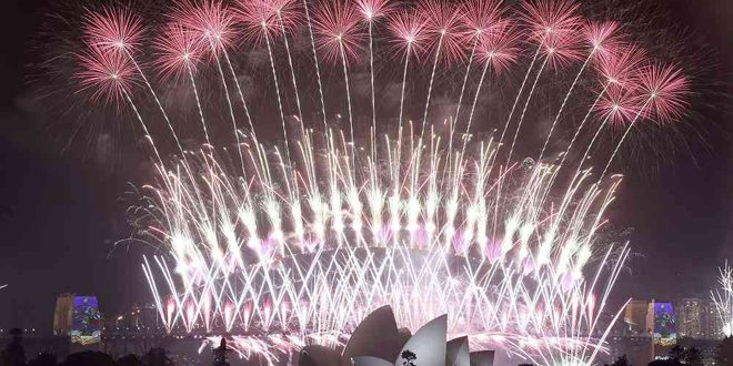 وتلتهما نيوزيلندا بعد ساعة حيث تجمعت حشود كبيرة في أوكلاند لمشاهدة عرض للألعاب النارية.
