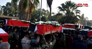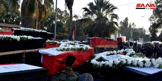 أهالي الشهداء استقبلوا جثامين أبنائهم بالحزن المقرون بالاعتزاز والفخر والأمل بأن تزهر دماء الشهداء نصراً على كل الطامعين بأرض الوطن والقضاء على الإرهاب.
