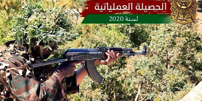 أعلنت الجزائر عن تمكنها من القضاء على 21 إرهابياً واعتقال 9 آخرين إضافة إلى تسليم 7 إرهابيين أنفسهم خلال عمليات مكافحة الإرهاب في البلاد خلال العام المنصرم 2020 .