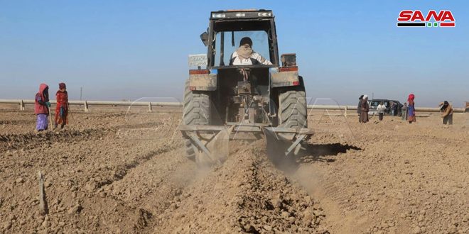 نشاط ملحوظ تشهده الأراضي الزراعية المشمولة بمشروعي الري للقطاعين الثالث والخامس بريف دير الزور الشرقي حيث يتشارك الجميع في حراثة وزراعة الأراضي التي وصلتها المياه بعد انقطاع دام عشرة أعوام جراء الإرهاب.