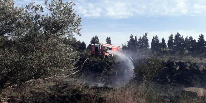 وذكر العميد غياث عاقل مدير فرع الدفاع المدني لمراسل سانا أن غرفة عمليات الفرع تلقت بلاغاً حول حريق بالأراضي الزراعية بناحية شين غرب حمص وعلى الفور توجه كوادر الفرع إلى المكان وعملوا على إخماد الحريق مشيراً إلى أن المساحة المحروقة بلغت ثلاثة دونمات من أشجار الزيتون.