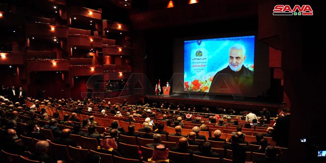 تحت عنوان “الاحتفاء بشهداء المقاومة” أقامت سفارة الجمهورية الإسلامية الإيرانية بدمشق في دار الأسد للثقافة والفنون حفلا تأبينيا إحياء للذكرى السنوية الأولى لاستشهاد الفريق قاسم سليماني ورفاقه.