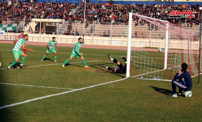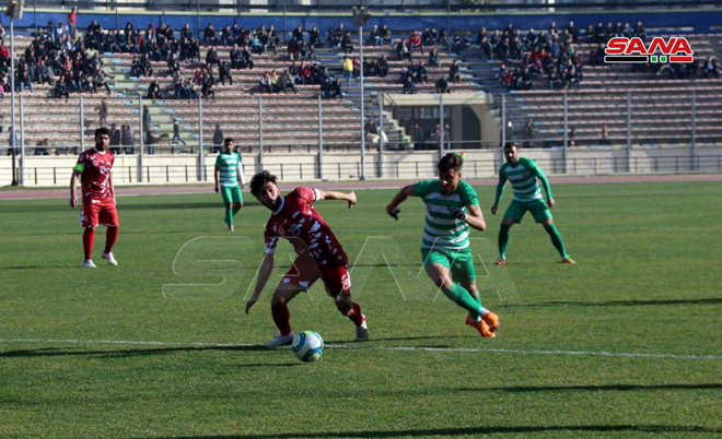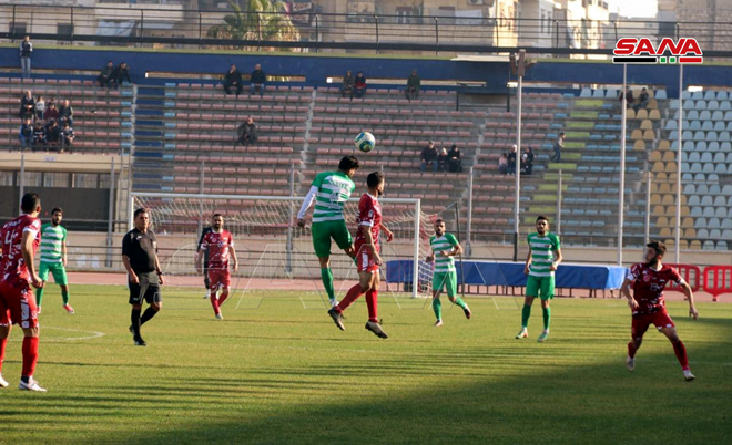 من مباراة الوثبة والكرامة على ملعب الباسل في قمة مباريات الجولة 11 من الدوري الممتاز
