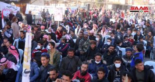 دير الزور-سانا أقيم في ساحة الفيحاء بمدينة البوكمال في ريف دير الزور تجمع جماهيري بمناسبة …