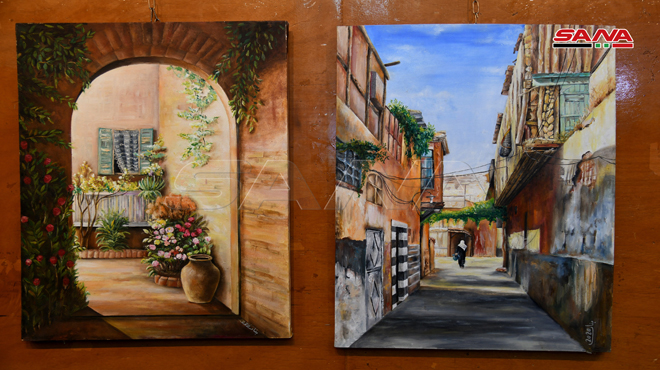 الفنانة التشكيلية باسمة الحريري شاركت بثلاثة أعمال عن التراث الدمشقي مستخدمة الألوان الزيتية للحارات والبيوت مبينة أهمية استحضار التراث في أعمال الفن التشكيلي.