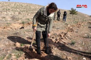 المهندسة عتاب عواد من مديرية زراعة حمص دائرة التأهيل والتدريب أكدت ضرورة المشاركة بهذه الحملات من قبل الجميع ليعود الغطاء النباتي إلى ما كان عليه سابقاً.