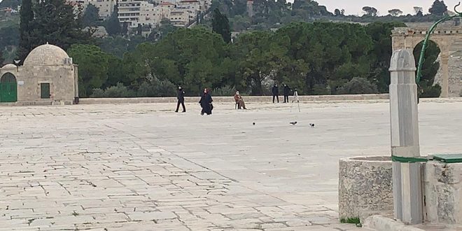 اقتحمت قوات الاحتلال الإسرائيلي اليوم المسجد الأقصى المبارك وأجرت أعمال مسح هندسي لباحاته ولصحن قبة الصخرة.