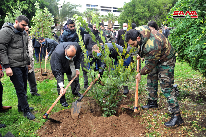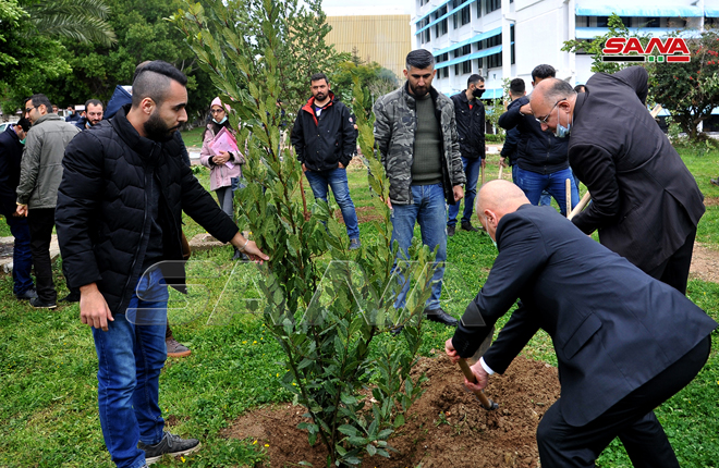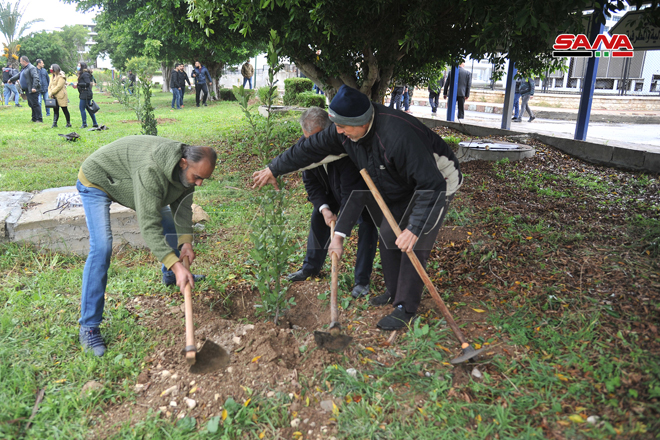 وعقب الاجتماع شارك الوزير قطنا بحملة تشجير ضمن حرم جامعة تشرين والتي تم فيها زراعة أشجار حراجية متنوعة شملت الخرنوب والغار والصنوبر الثمري ثم التقى في المكتبة المركزية بالجامعة بأساتذة وكوادر كلية الزراعة حيث أشار إلى أن الزراعة هي قاطرة النمو في سورية وأهمية التشاركية بين وزارة الزراعة والمؤسسات التعليمية لحل المشاكل المتعلقة بالزراعة في سورية والإسهام في عملية التطوير الزراعي ومؤكدا ضرورة تطبيق الأبحاث العلمية على أرض الواقع بما يحقق تكاملا للجهود بين كل الجهات البحثية والتطبيقية والتوصل إلى مخرج نهائي عملي يصل إلى الفلاح ويحقق له مردودا ذا جدوى اقتصادية.