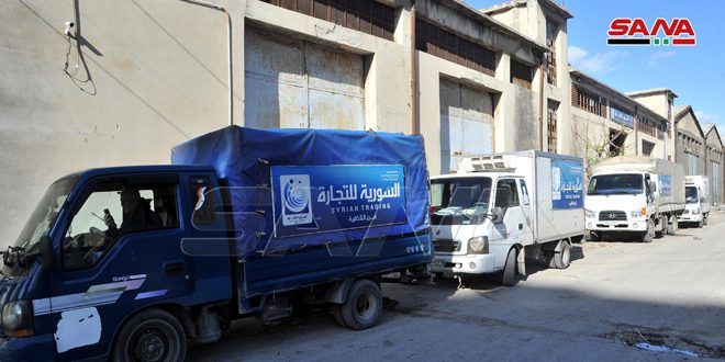 سير فرع المؤسسة السورية للتجارة باللاذقية اليوم 10 سيارات جوالة محملة بنحو 50 طنا من المواد المدعومة “سكر ورز” إلى حي الرميلة على أطراف مدينة جبلة.