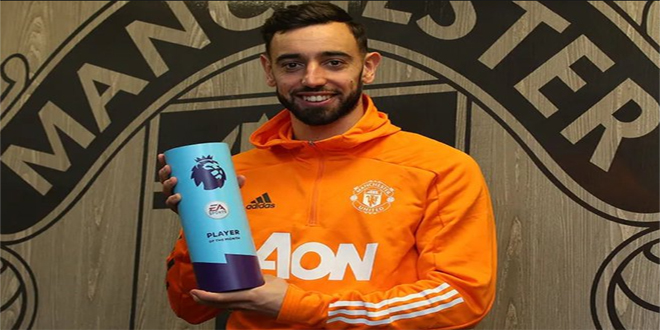 فاز البرتغالي برونو فرنانديز لاعب وسط نادي مانشستر يونايتد بجائزة أفضل لاعب خلال كانون الأول الماضي بالدوري الإنكليزي متفوقاً على محمد صلاح نجم ليفربول.