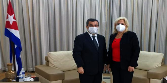 بحث سفير سورية في كوبا الدكتور إدريس ميا مع النائب الأول لوزير التجارة الخارجية والاستثمار الأجنبي الكوبي أنا تيريسا غونزاليس سبل تعزيز العلاقات الاقتصادية والتعاون بين البلدين.