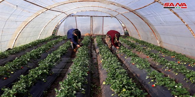 مزارعو تلكلخ يبدؤون جني محصول الفريز