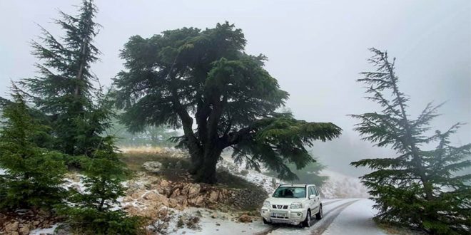 غطت الثلوج للمرة الأولى هذا العام المرتفعات الجبلية في منطقة الشوف وشمال لبنان بدءاً من ارتفاع نحو 1400 متر وما فوق وأدت إلى قطع الطريق الذي يصل الشوف بالبقاع عبر معاصر الشوف (الأرز) كفريا صباح اليوم.