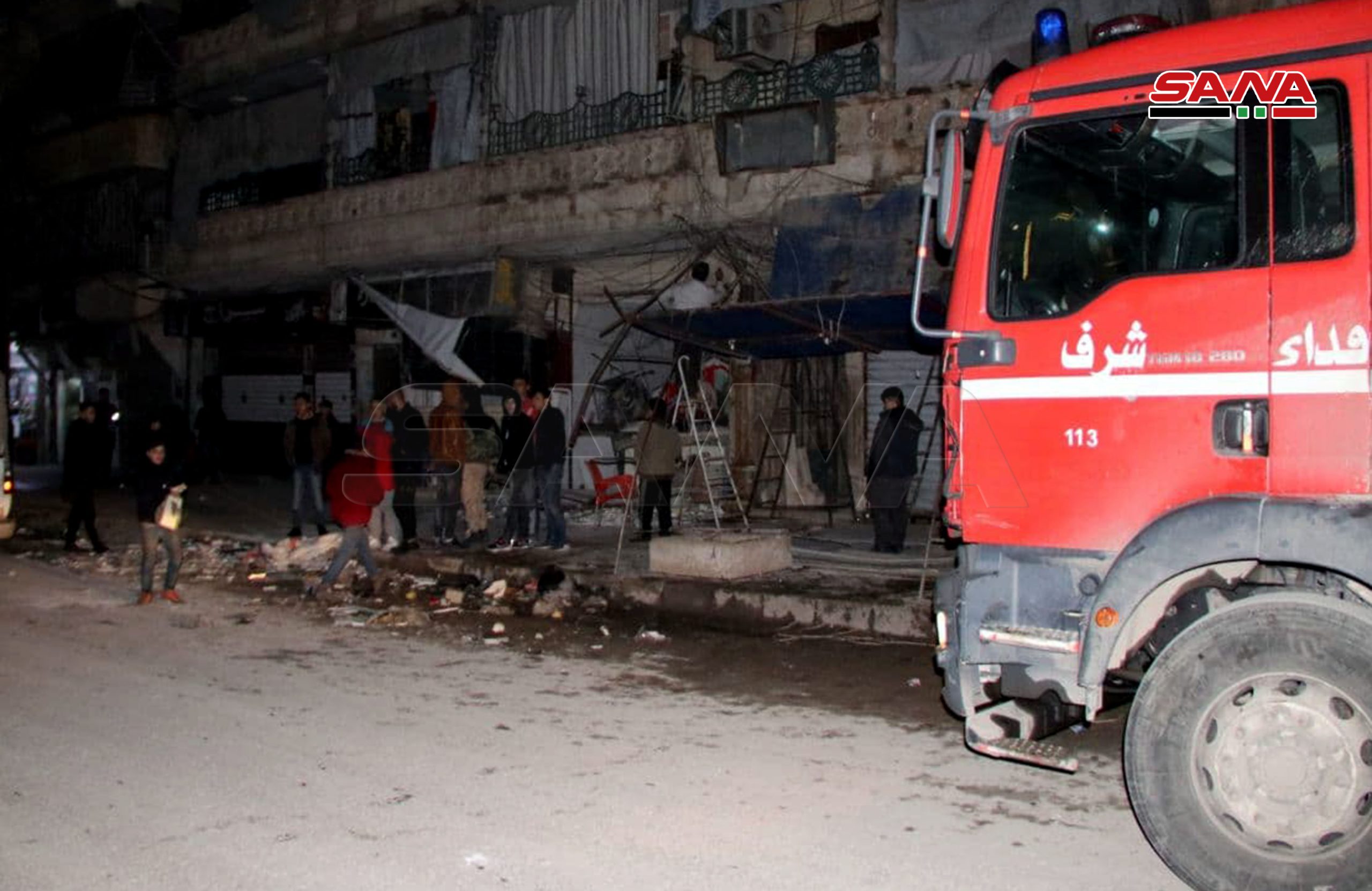وذكرت مصادر في قيادة شرطة محافظة حلب في تصريح لمراسل سانا أن سبب الانفجار يعود إلى تسرب مادة الغاز من إحدى الأسطوانات الموجودة داخل المحل ما أدى لاشتعال النيران وحدوث انفجار ووفاة شخص في العقد الخامس من عمره وإصابة أربعة أشخاص آخرين بحروق تم إسعافهم إلى مشفيي الجامعة الحكومي والمستقبل الخاص.