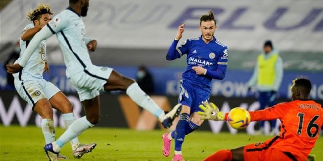 تصدر ليستر سيتي الدوري الإنكليزي الممتاز لكرة القدم بفوزه 2 صفر على تشيلسي اليوم.