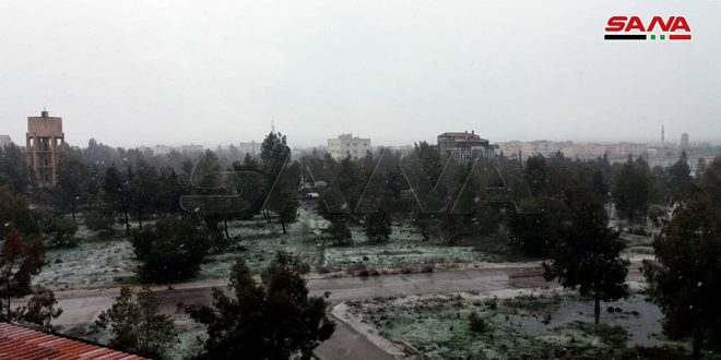 بدء تساقط الثلوج في مدينة البعث بالقنيطرة