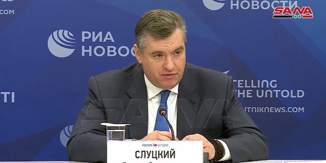 دعا رئيس لجنة الشؤون الدولية في مجلس الدوما الروسي ليونيد سلوتسكي إلى توحيد الصفوف والوقوف بحزم في جميع المحافل الدولية ضد الإجراءات القسرية أحادية الجانب المفروضة على سورية مؤكداً أن هذه الإجراءات تفاقم معاناة الشعب السوري ولا سيما في ظل تفشي فيروس كورونا.