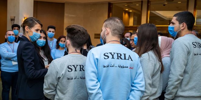 أكدت السيدة أسماء الأسد خلال لقائها الفرق الوطنية المشاركة في منافسات الأولمبياد العلمي السوري 2021 وأساتذتهم أن نهضة الدول لا تتحقق إلا بالتعليم والمعرفة التي تقود نحو مستقبل أفضل مشددة على أهمية المنصة الإلكترونية التي أطلقتها هيئة التميز والإبداع في توفير أنظمة تعليم وتدريب عن بعد تواكب التطور وتؤمن التباعد الآمن لجميع المتعلمين والمتدربين.