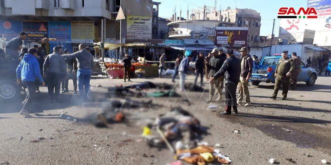 وقال مصدر في قيادة عمليات بغداد لمراسلة سانا “إن تفجيرا إرهابيا مزدوجا نفذه انتحاريان في سوق البالة والعسكري في ساحة الطيران وسط بغداد صباح اليوم أسفر عن استشهاد ثمانية عراقيين وإصابة خمسة عشر آخرين في حصيلة أولية” مشيرا إلى أن معظم الضحايا من عمال البناء وأصحاب البسطات.