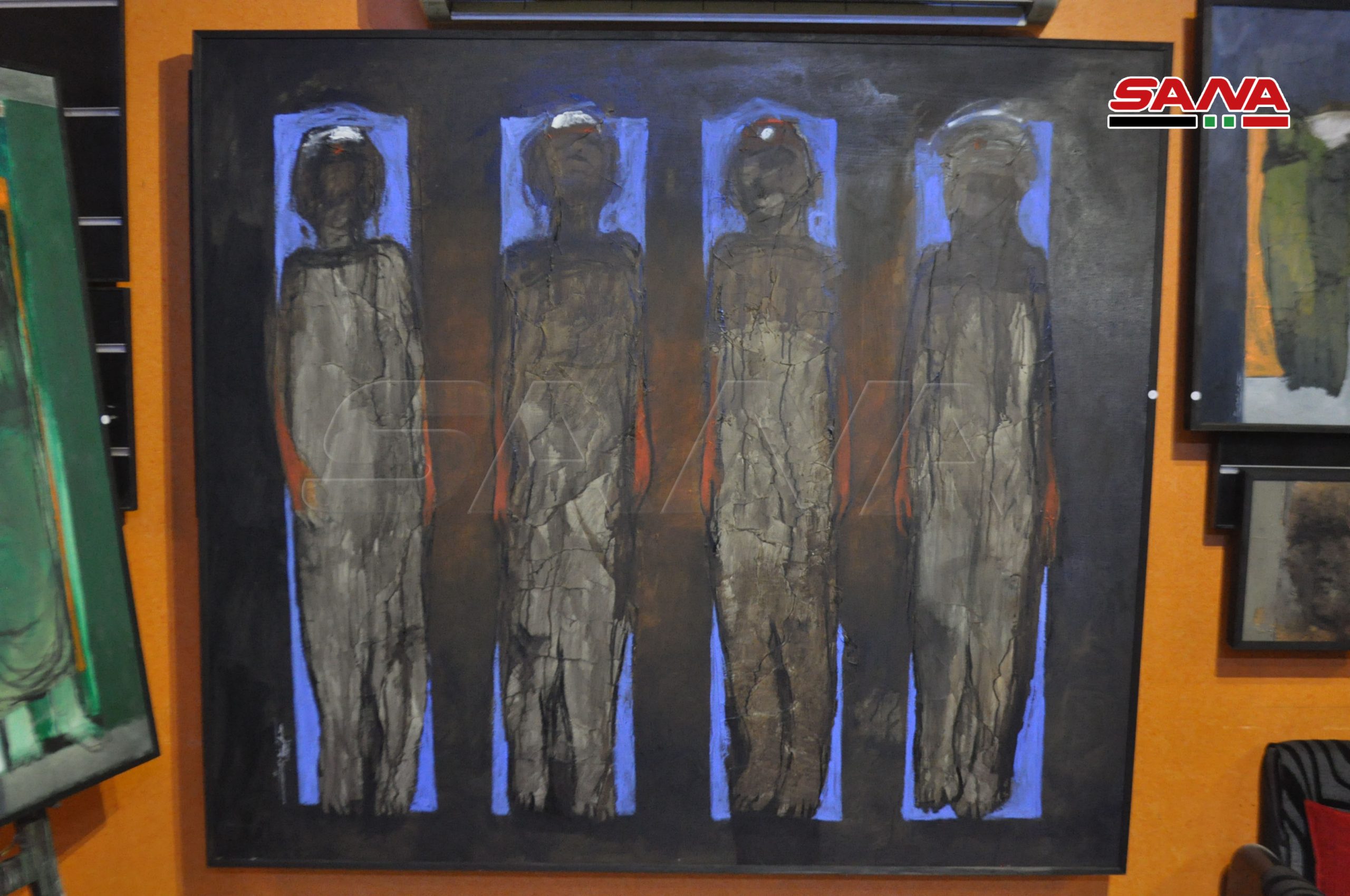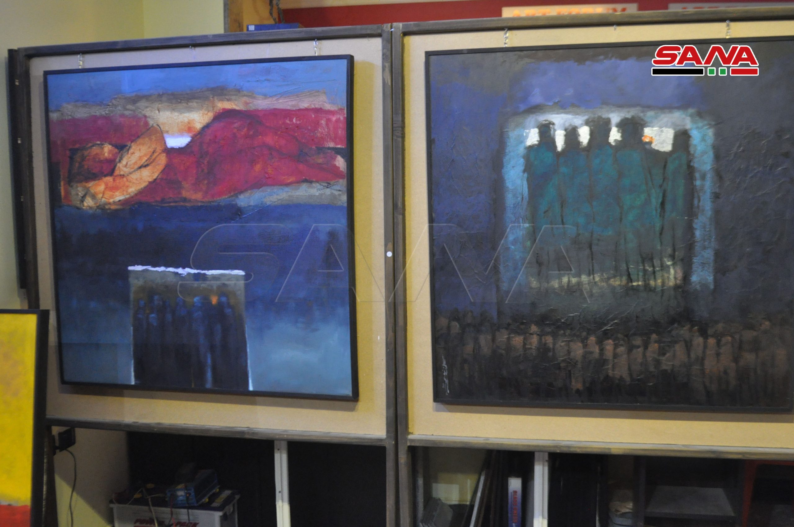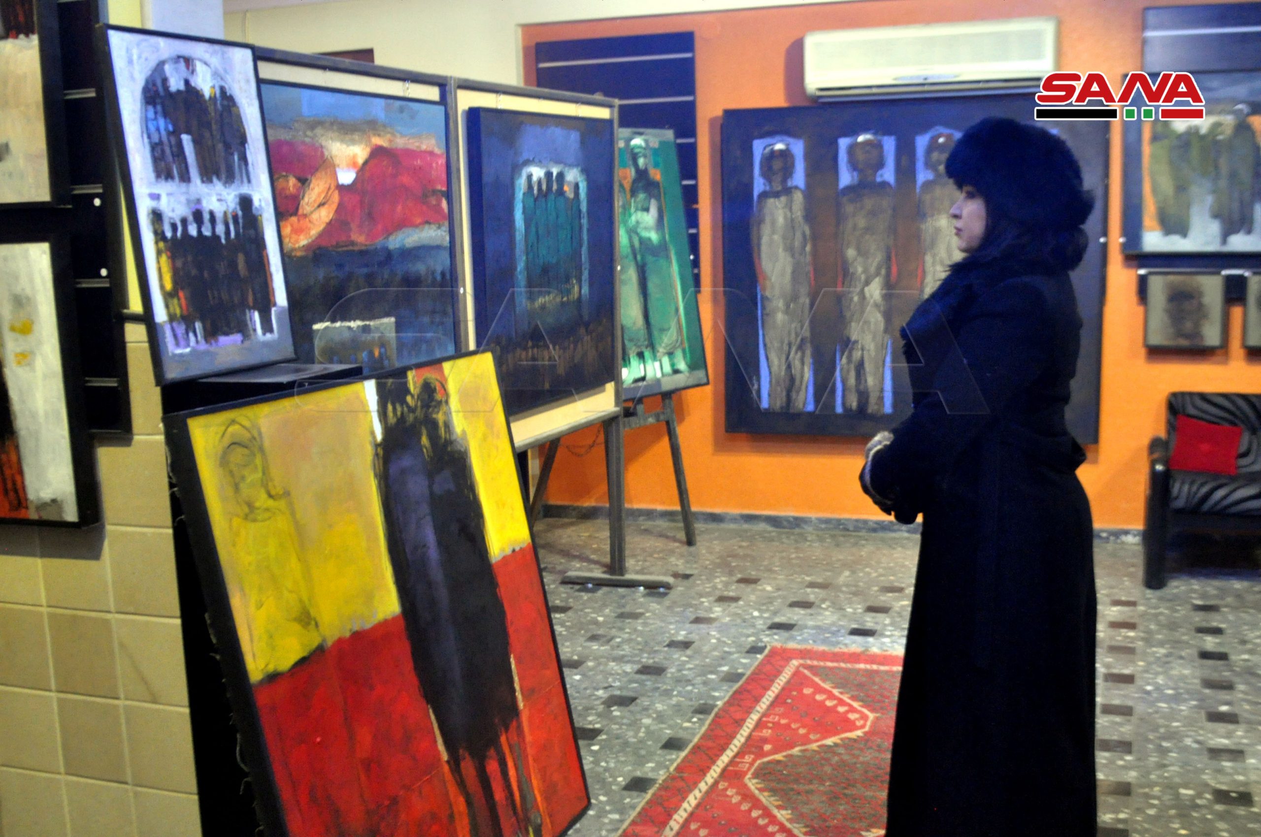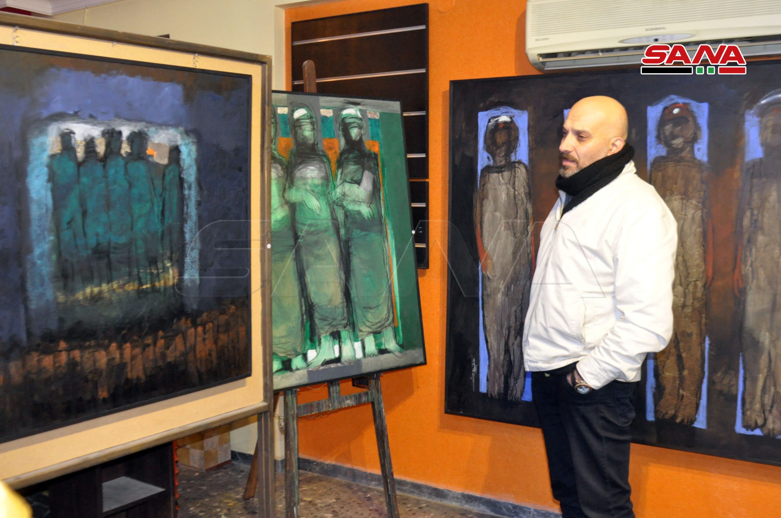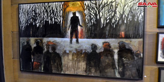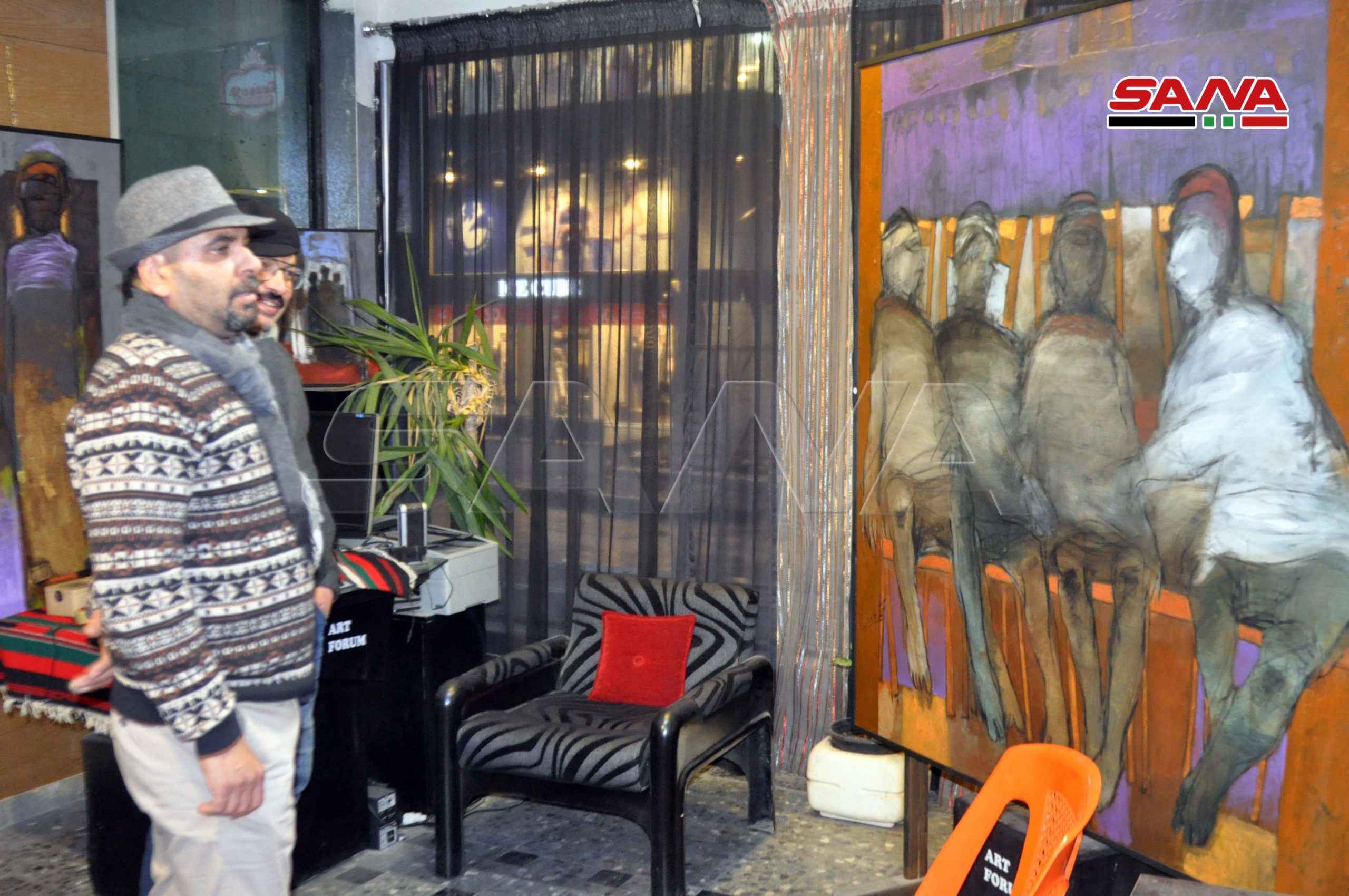 الفنان نعيم اوضح لمراسل سانا أنه يعتمد على التشكيل والتعبيرية ومعرضه يمثل انطلاقة ومرحلة جديدة في العمل يعكس فيه احاسيسه وحالته النفسية على سطح لوحاته عبر تكوينات فنية إنسانية بإسلوب وشكل وألوان جديدة.