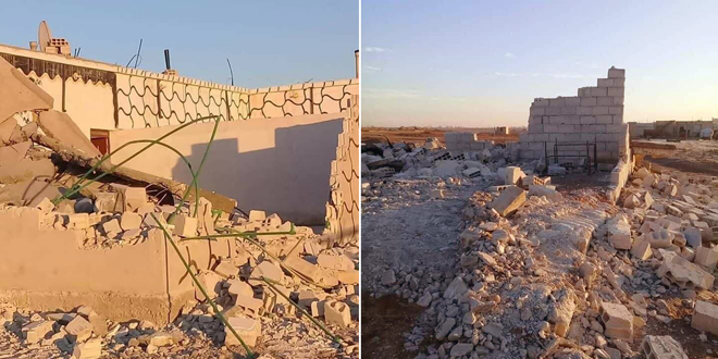 وذكرت مصادر محلية من المنطقة لـ سانا أن آليات جرف وهدم تابعة لميليشيا “قسد” قامت بمؤازرة مجموعات من مسلحي الميليشيا بتجريف عشرات المنازل شمال دوار حزيمة بذرائع متعددة.