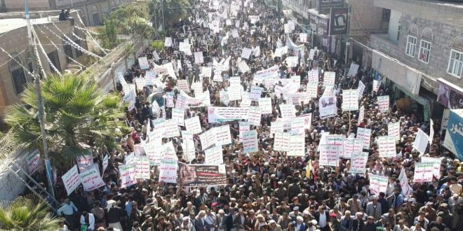 انطلقت في العاصمة اليمنية صنعاء ومحافظات أخرى مسيرات جماهيرية حاشدة تحت عنوان (الحصار والعدوان الأمريكي جرائم إرهابية) للتنديد باستمرار العدوان السعودي والحصار على الشعب اليمني والدعوة إلى وقفهما فيما ستنظم في وقت لاحق اليوم حملة دولية مناهضة للعدوان والحصار.