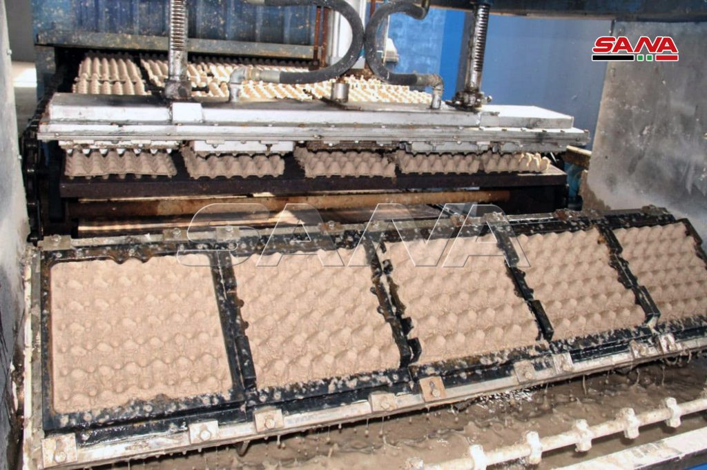 تعمل وحدة إنتاج أطباق كرتون البيض في منشأة دواجن طرطوس المنشأة الوحيدة من نوعها في سورية التي تتبع للقطاع العام على تأمين حاجة منشأتي دواجن طرطوس واللاذقية وتطمح للوصول لإنتاج يغطي حاجة كامل منشآت الدواجن التابعة للقطاع العام في سورية من المادة .