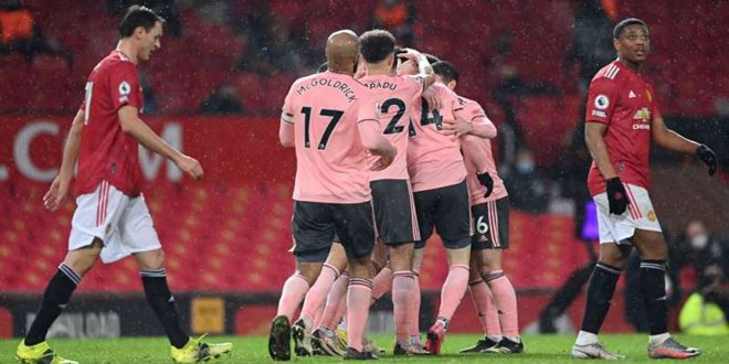 تلقى مانشستر يونايتد هزيمة مفاجئة 2-1 أمام ضيفه شيفيلد يونايتد متذيل ترتيب الدوري الإنكليزي الممتاز لكرة القدم ليترك مانشستر سيتي في الصدارة.