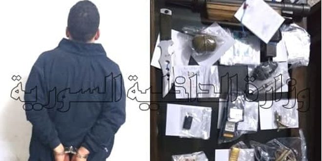 وأوضحت وزارة الداخلية في بيان تلقت سانا نسخة منه أنه بعد ورود معلومات مؤكدة عن وجود أحد المطلوبين في حي الجبيبات بمدينة جبلة والذي قام مؤخراً بالتهجم بقوة السلاح على منزل إحدى السيدات بالحي المذكور وهددها بالقتل توجهت دورية من مركز الأمن الجنائي في جبلة إلى الحي وألقت القبض عليه أثناء خروجه من منزله حيث حاول ممانعة الدورية وإلقاء قنبلتين محاولاً الهروب فتم التعامل معه وتوقيفه.