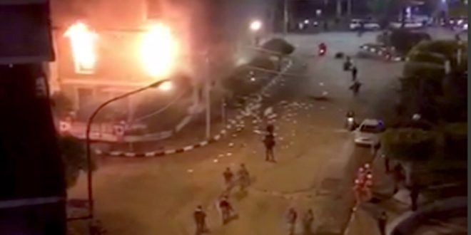 وأقدم المحتجون على إلقاء الحجارة والمفرقعات والقنابل اليدوية داخل باحة سراي طرابلس ما أدى إلى إلحاق أضرار مباشرة بالمولد الكهربائي الذي يغذي السراي بالطاقة الكهربائية واندلاع حريق كبير في المحكمة الشرعية داخل السراي.