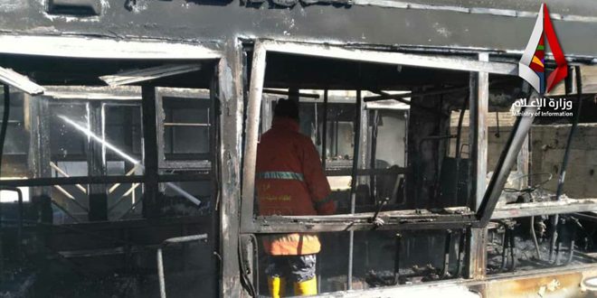 وذكر مصدر من إطفاء فوج دمشق لمندوبة سانا أنه تم اخماد الحريق بشكل كامل ونجم عنه أضرار مادية كبيرة لحقت بإحدى حافلات نقل الركاب وأضرار بسيطة بحافلة أخرى مؤكدا عدم وقوع أي إصابات.