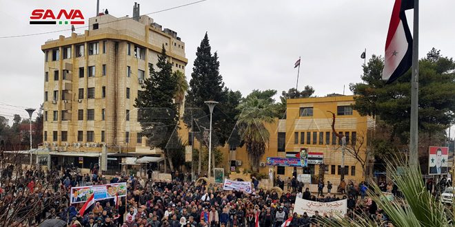 بدورها شجبت مسيرة الحسن حصار المواطنين الأبرياء ومنع الماء والغذاء عنهم والسعي إلى تجهيل التلاميذ والطلاب عبر منعهم من مقاعد الدراسة مشيرة إلى أن الشعب السوري الذي ظل صامداً طيلة عشر سنوات مستمر في موقفه الوطني وأن النصر حليفنا بهمة أبطال جيشنا وتكاتف شعبنا.