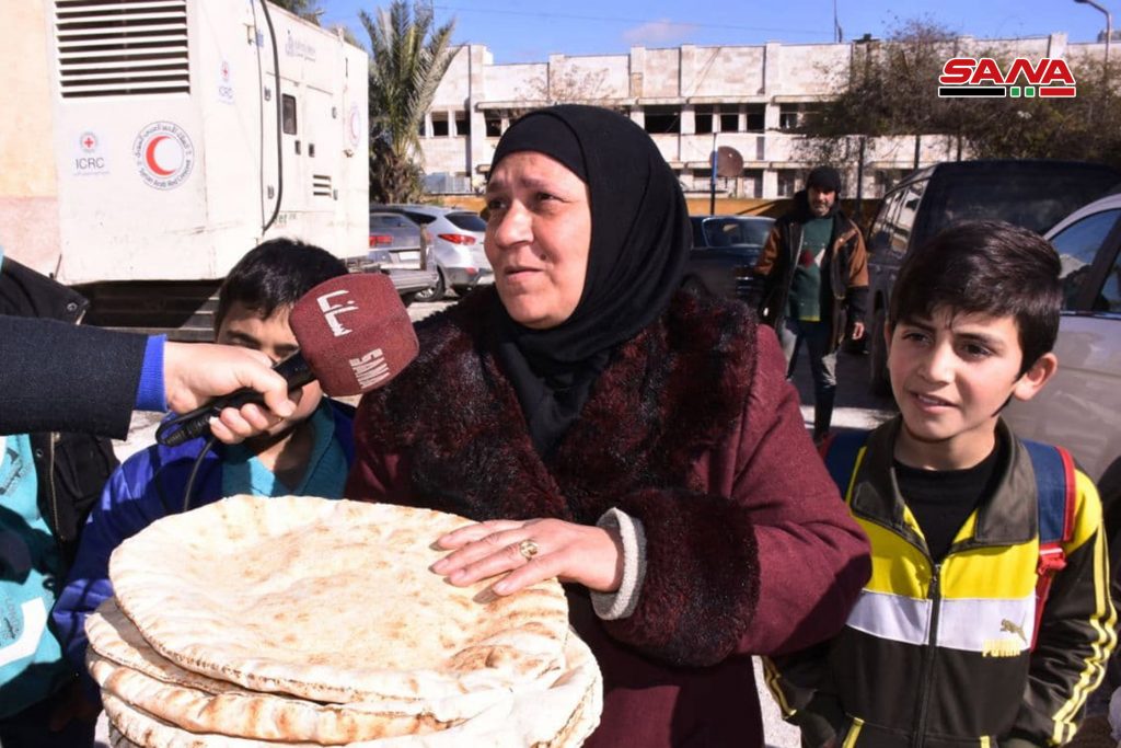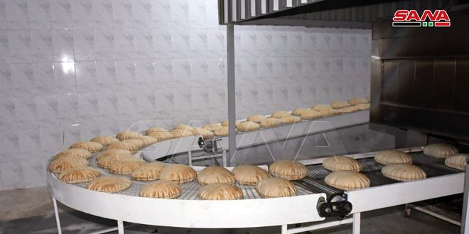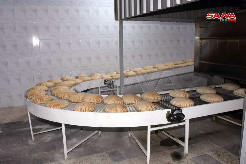 كاميرا سانا واكبت مراحل صناعة الرغيف في مخبز تشرين الآلي حيث بين كمال كوسا مدير المخبز أنه تم تجهيزه لإنتاج 10 أطنان من الخبز يوميا لتغطية حاجة السكان في حي الحمدانية لافتا إلى أنه تم تصنيع الات خط الإنتاج باياد وخبرات وطنية ويتم العمل على تحسين صناعة الرغيف وتامينه للمواطنين.