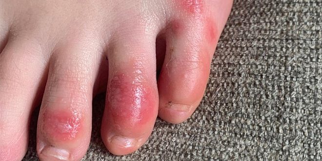 ونقل موقع التلفزيون الألماني دي دبليو عن العلماء قولهم إن بعض المصابين يعانون من التهاب في أصابع أقدامهم ويسمى ذلك أصابع كوفيد 19 وهو عبارة عن حكة مؤلمة سببها التهاب يصيب جلد أصابع القدم يشبه التورم، معتبرين ذلك من بين الأعراض طويلة المدى للمرض.