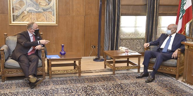 وناقش بري مع رئيس بعثة قوة الأمم المتحدة المؤقتة في لبنان (يونيفيل) الجنرال ستيفانو دل كول التصعيد الإسرائيلي والخروقات المستمرة للسيادة الوطنية اللبنانية.
