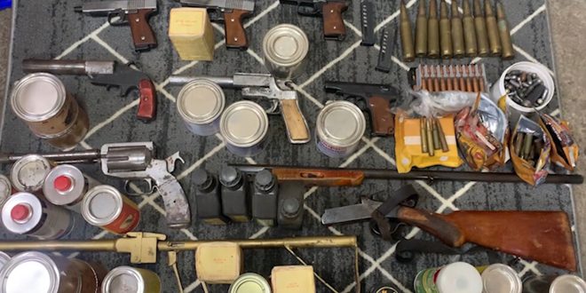 وأضاف المركز إن “العملية المشتركة سمحت بإيقاف عمل 28 ورشة غير قانونية كانت تقوم بتحديث الأسلحة وإنتاج الذخائر” مبينا أن قائمة الأسلحة المصادرة تضم 3 رشاشات و18 بندقية أوتوماتيكية و48 بندقية و113 مسدساً و27 قذيفة هاون من عيارات مختلفة و45 قنبلة يدوية وأكثر من 26 ألف طلقة و5ر34 كيلوغراما من المتفجرات وغيرها.