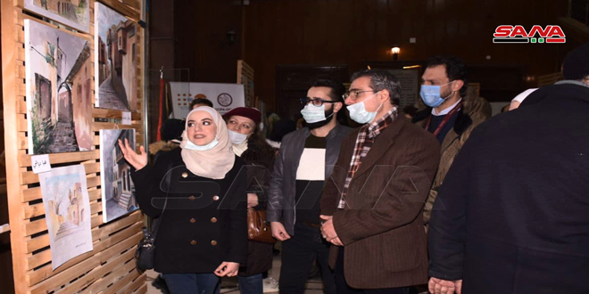 طلاب كلية الفنون الجميلة بحلب يفتتحون معرضاً فنياً بدار الكتب الوطنية