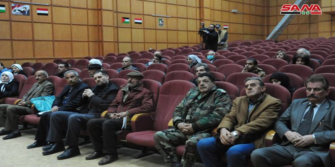 كما شارك الشاعر جمال القجة بقصيدة عمودية حملت نفساً غنائياً وهو يمجد تضحيات الشهداء التي كانت الطريق إلى النصر فقال.. وجاء الأحمر القاني.. بجمر النصر متقداً.. وروى المجد عزتنا.. من العاصي إلى بردى.