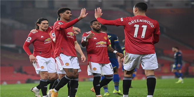 عاد مانشستر يونايتد إلى طريق الانتصارات بطريقة رائعة بعد فوزه 9-صفر على ساوثامبتون الذي أنهى المباراة بتسعة لاعبين ليتساوى في النقاط مع مانشستر سيتي متصدر الدوري الإنكليزي الممتاز لكرة القدم اليوم.
