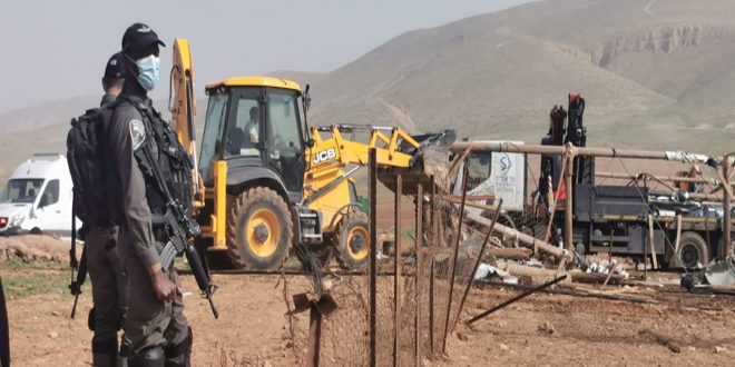 وكانت قوات الاحتلال الإسرائيلي اقتحمت أمس الأول خربة حمصة الفوقا في الأغوار الشمالية بالضفة الغربية وهدمت عدة منشآت زراعية.