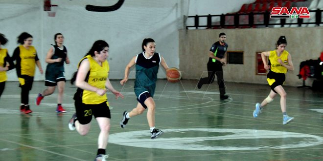 من مباراة جرمانا والعربي بدوري كرة السلة للسيدات لأندية الدرجة الثانية في صالة الباسل بالسويداء