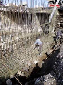 وأوضح الزعبي أن العمل يتضمن أعمال تكسير للأجزاء المخربة وترحيلها وصب القواعد البيتونية الحاملة للركائز وبعدها صب بلاطة الجسر وتنفيذ الأجنحة وتعبيد الطريق فوق الجسر مبيناً أن مدة التنفيذ لوضع الجسر بالخدمة نحو ثلاثة أشهر.