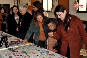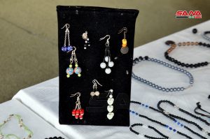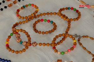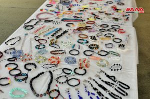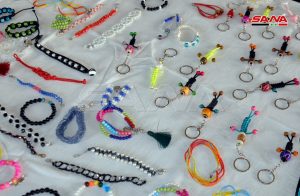 أعمال يدوية مصنوعة من الخشب والخرز والخيطان قدمها ستة مصابين بمتلازمة داون في محافظة السويداء ضمن معرض أقامته اليوم مبادرة مجموعة أنا أستطيع.