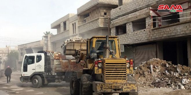 وأشار نائب رئيس المكتب التنفيذي في المحافظة حسين إسحاق إلى متابعة المحافظة عمليات ترحيل الأنقاض وفتح الطرقات والشوارع في تجمعات النازحين بريف دمشق لتسهيل حركة تنقل المواطنين وآلياتهم بما يسهم في عودة المزيد من الأسر إلى منازلهم التي هجروا منها جراء الإرهاب.