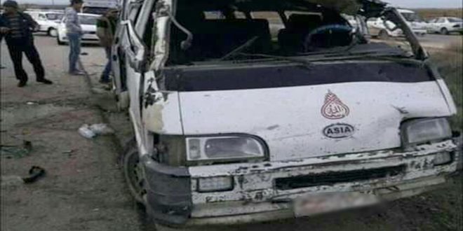 وأوضح مصدر في مركز شرطة الطرق العامة بحزم في تصريح لمراسل سانا أن سيارة من نوع (سرفيس) تقل عاملات في توضيب وفرز التفاح تدهورت خلال عودتهن من العمل باتجاه دمشق نتيجة انفجار أحد إطارات (السرفيس) عند منعطف إلى الشرق من قرية ذكير بريف السويداء الشمالي بالترافق مع سرعة زائدة ما أدى إلى خروجها عن الطريق وانقلابها ما تسبب بوفاة السائق وإصابة تسع نساء من ركابه بجروح متفاوتة جرى نقلهم إلى مشفى الشهيد زيد الشريطي الوطني بمدينة السويداء.