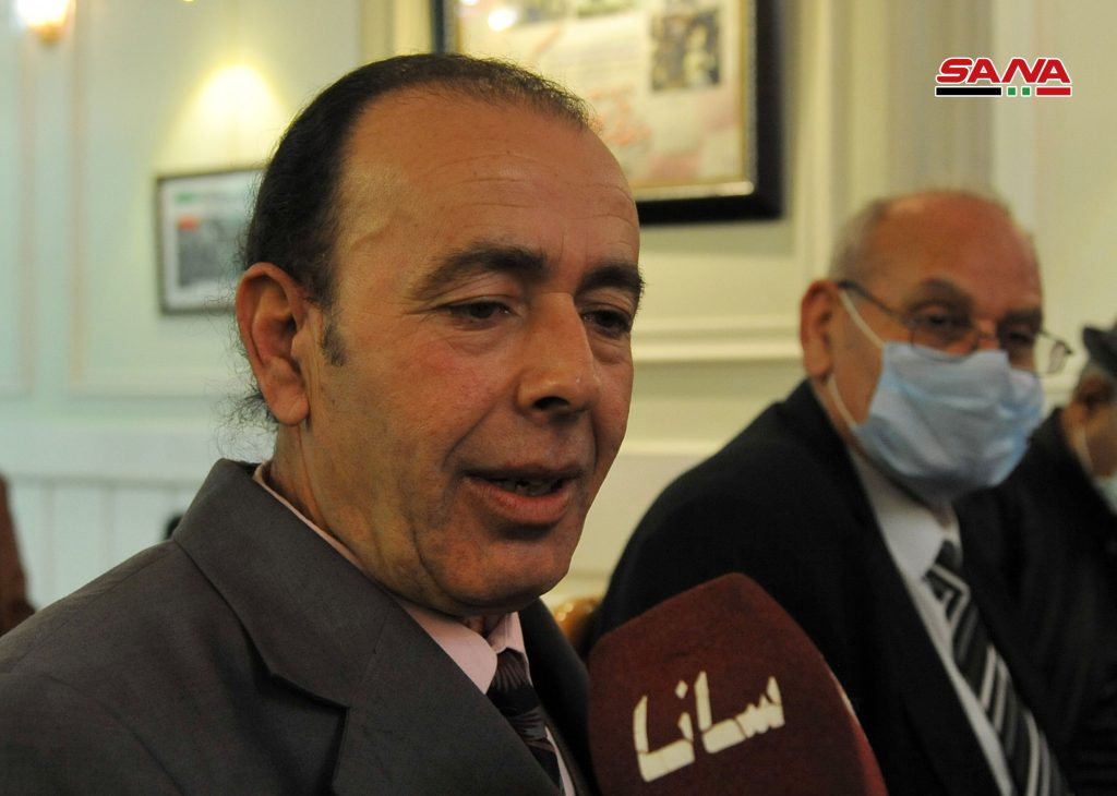 القاص محمد الحفري بين أن مشاركته جاءت بقصة بعنوان العائد تصور تعلق السوري بتراب بلده ودفاعه عنها رغم كل ظروف الحرب الإرهابية على بلدنا.
