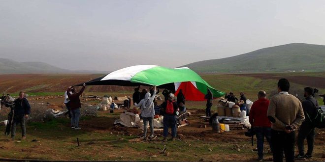 وأوضح أبو الكباش في تصريح لمراسل سانا أن الاحتلال يخطط لتهجير أهالي قرية حمصة الفوقا والقرى المحيطة للاستيلاء على 60 ألف دونم من أراضي الفلسطينيين بهدف توسيع المستوطنات في المنطقة وإقامة أخرى وشق طرق استيطانية التفافية فيها مضيفا.. نتعرض لعدوان دائم من الاحتلال.. اقتحامات وهدم وترهيب للأطفال والنساء.. وبتنا نفترش الأرض ونلتحف السماء لكننا لا نهاب بطشهم وعدوانهم وسنبقى على الأرض نقاوم كل مخططات الاحتلال الاستعمارية الهادفة لاقتلاعنا من الأغوار.