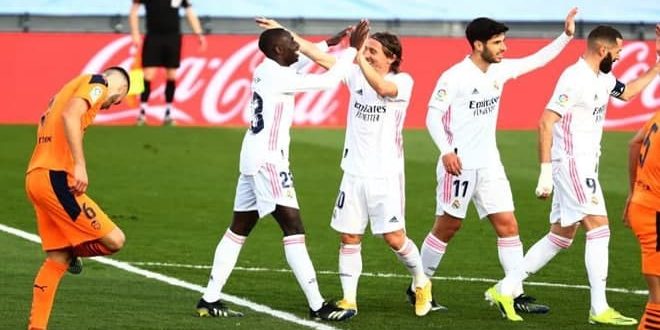فاز ريال مدريد اليوم على ضيفه فالنسيا بهدفين مقابل لا شيء في اللقاء الذي جمع بينهما على ملعب ألفريدو دي ستيفانو ضمن منافسات الجولة الـ 23 من الدوري الإسباني لكرة القدم.